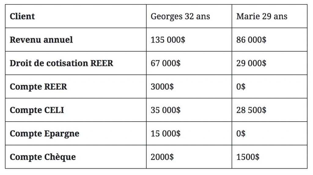 D’abord, vous conservez l’argent des comptes CELI épargne et chèque. Ensuite, vous faîtes un prêt REER de 25 000$ sur le REER de Georges. Puis, un prêt REER de conjoint de 17 000$ au nom de Marie et, enfin, un dernier de 8 000$ sur le REER de Marie.