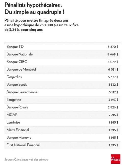 Par exemple, dans les banques traditionnelles, les pénalités à acquitter pour mettre fin à une hypothèque peuvent atteindre 10 000$, alors que chez les prêteurs virtuels, c’est plutôt 5 fois moins, autour de 2 000$.